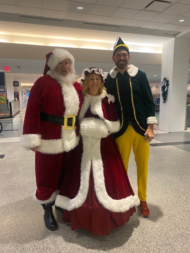 Check out the picture of Mrs. Claus and me picking up Buddy at Cleveland Airport.